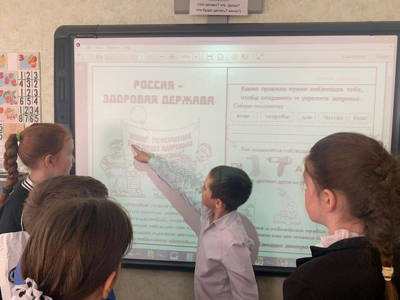В ходе урока ученики начальной школы посмотрели видеоролик «Азбука здоровья» и обсудили тематические плакаты о распорядке дня и режиме питания. «Разговоры о важном» в 6–11-х классах дополнили информацией о достижениях российской медицины. Ребятам показали ролик об открытиях ученых, которые имели большое значение не только для нашей̆ страны, но и всего мира.
