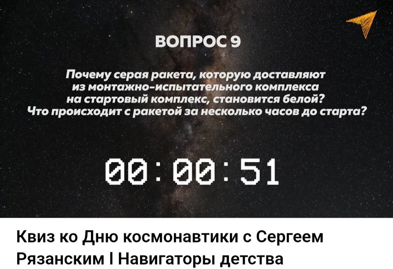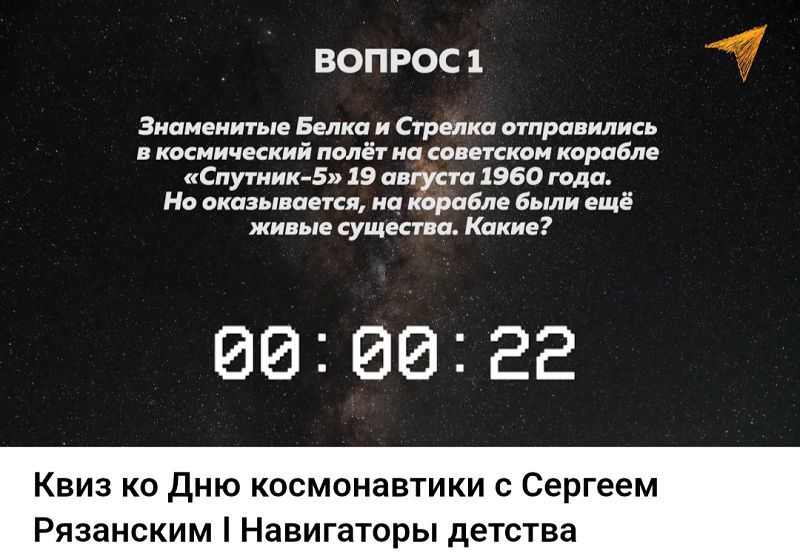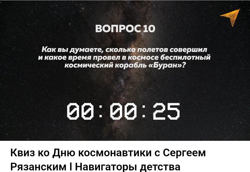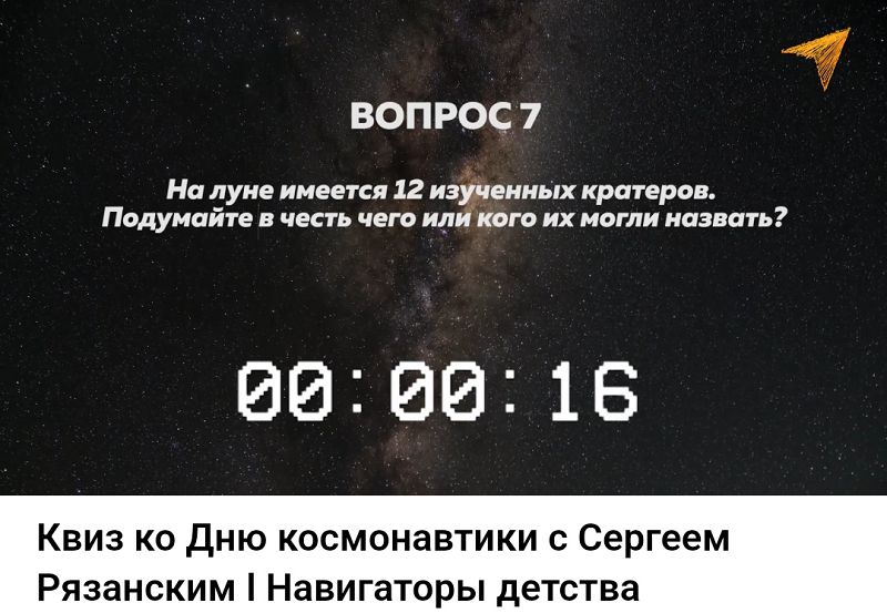 Команда проекта "Навигаторы детства" с участием космонавта, героя Российской Федерации Сергея Николаевича Рязанского подготовила для обучающихся видеоквиз. Ребята из 6-11 классов ответили на видео вопросы космонавта, на многие из которых были даны верные ответы.