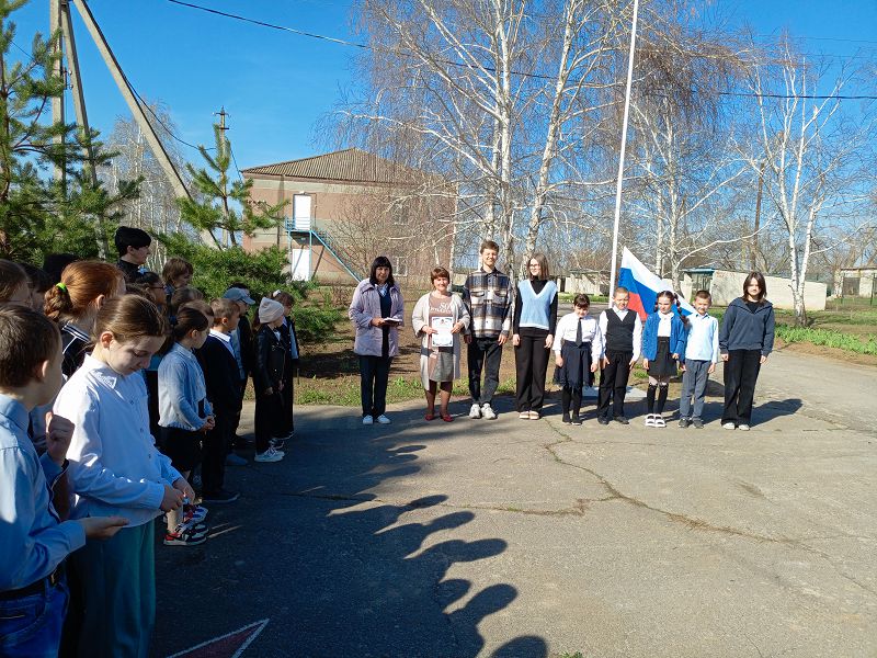Право поднять Флаг РФ было предоставлено ученице 10 класса Казьменко Анне - победителю районной краеведческой конференции «От героев Великой Отечественной к героям специальной военной операции» (благодарственное письмо было вручено руководителю акции Мышанской С.В.), активным участникам районной акции «Мир правил дорожного движения».