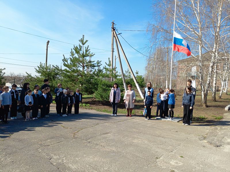 8 апреля 2024 года, новая учебная неделя в МБОУ Зазерской СОШ традиционно началась с подъема Государственного Флага Российской Федерации и исполнения Государственного Гимна РФ.