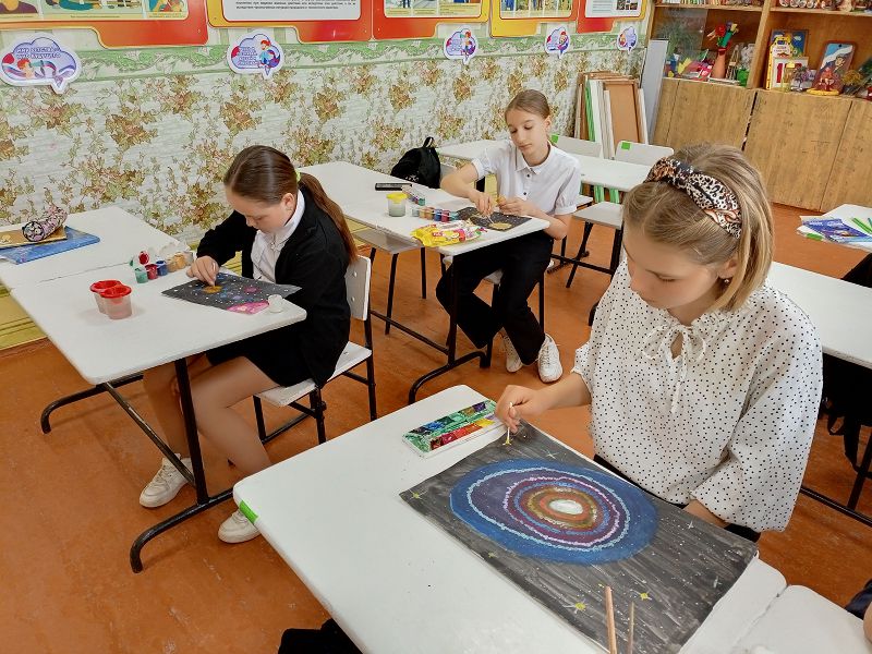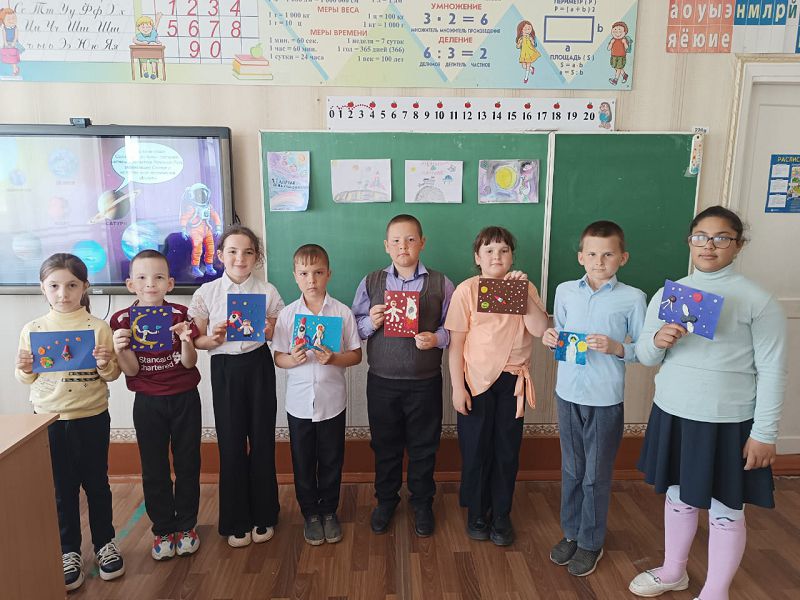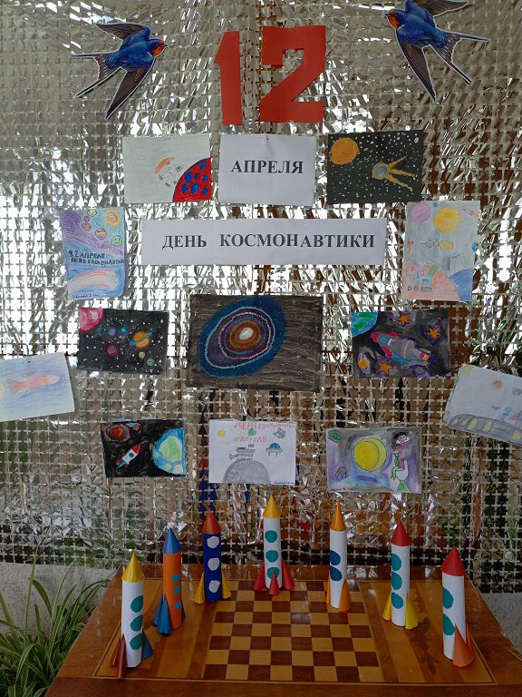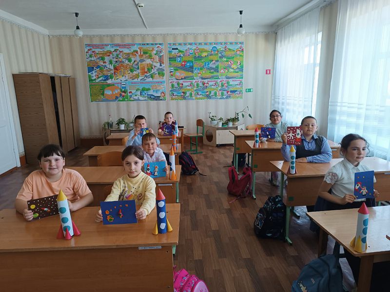 Вместе с классными руководителями дети знакомились с биографиями первых космонавтов, материалами об освоении космоса, вспоминали имена космонавтов и ученых, которые внесли неоценимый вклад в российскую космонавтику, посвятили забег Гагаринскому старту на свежем воздухе. На уроках рисования и технологии учащиеся готовили «космические» поделки и рисунки. В итоге в школе была оформлена выставка и фотозона, где дети смогли помечтать о звездах.