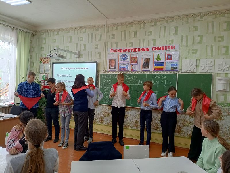 В преддверии этого праздника советником по воспитанию Самсоновой Н.А. с учащимися 5-7 классов было проведено мероприятие «Наследники пионерии».