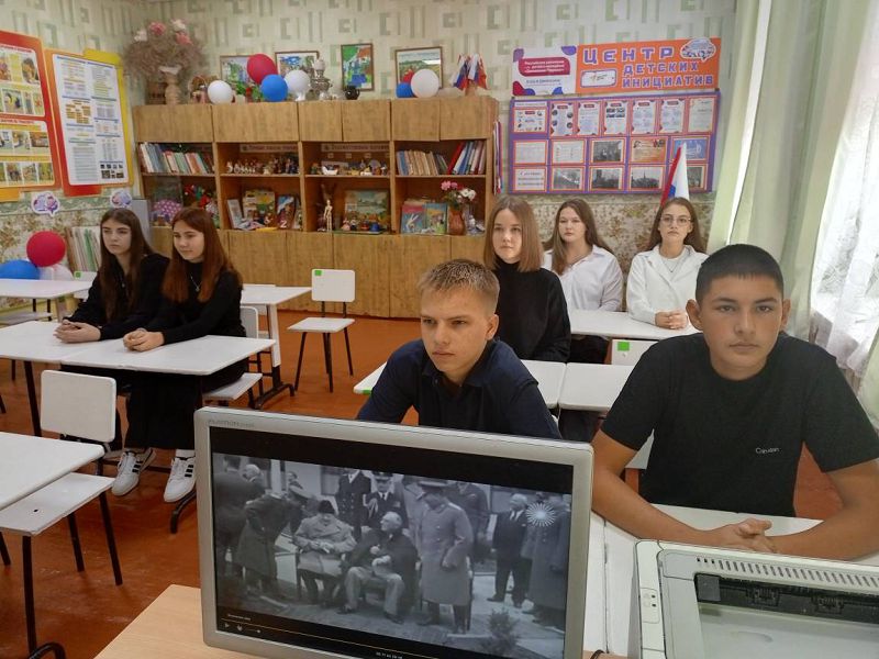 - кинолекторий «Кадры Победы» с просмотром документального фильма «Война после победы» с обучающимися 9, 11 классов совместно с учителем истории Высочевой Л.Е., которая пояснила важную роль участия советских войск в завершающем этапе второй мировой войны, капитуляции милитаристской Японии.