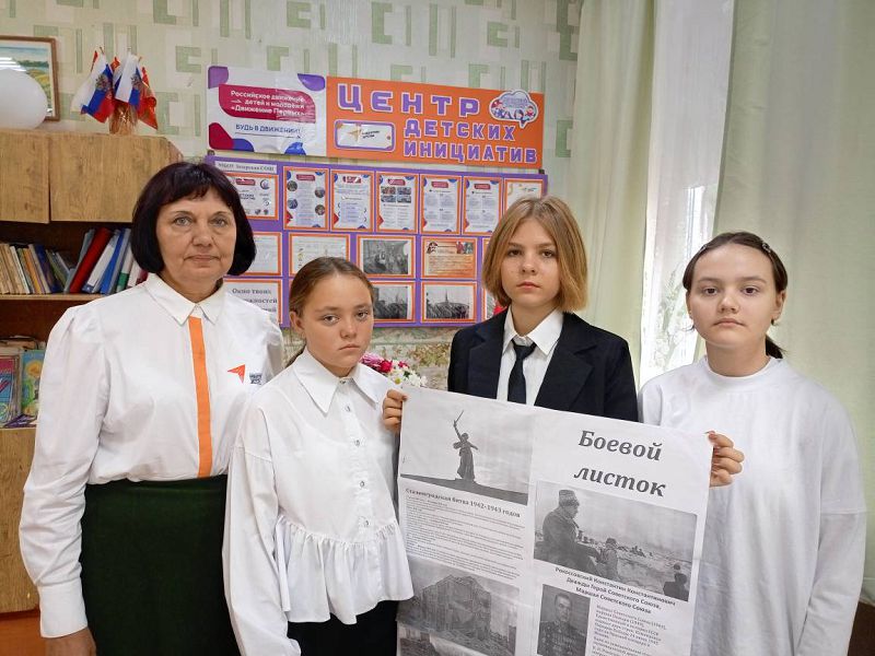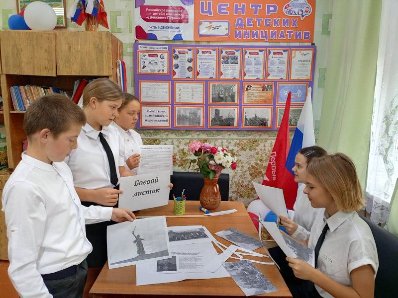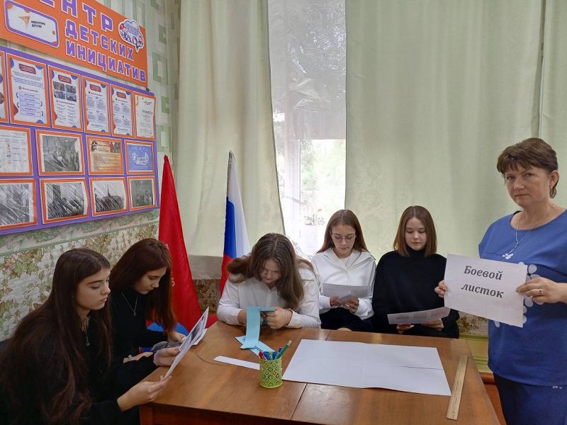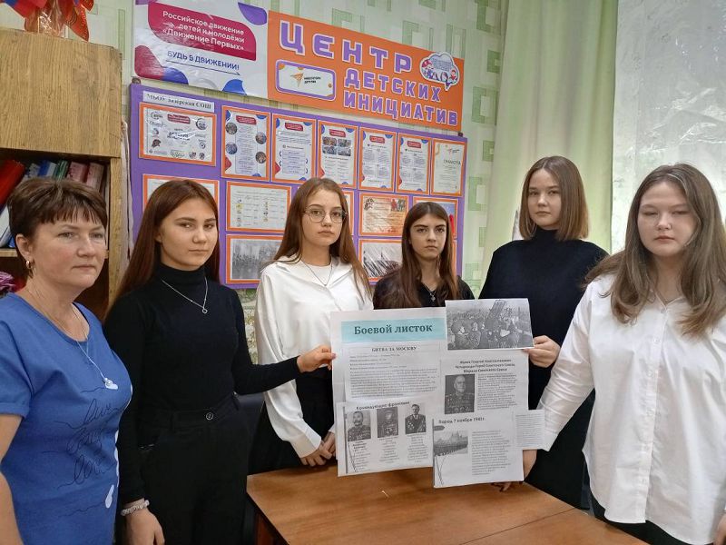 - акция «Помня о подвиге», в которой приняли участие команды учеников 6 класса и 9, 11 классов под руководством советника директора по воспитанию и взаимодействию с детскими общественными объединениями Самсоновой Н.А. и классного руководителя 11 класса Мышанской С.В.. Ребята подготовили боевые листки о великих битвах Великой Отечественной войны: битве за Москву и Сталинградской битве;
