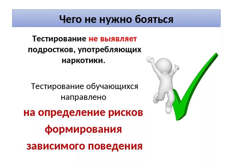 Родители, чьи дети подлежат тестированию, осведомлены, ознакомлены с этапами и принципами его проведения, те, чьим детям на момент тестирования не исполнилось 15 лет, подписали согласия на прохождение их детьми СПТ. Дети, которым на момент тестирования исполнилось 15 лет, написали согласия самостоятельно.