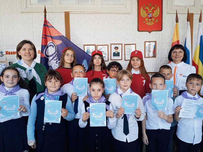 Советником директора по воспитанию и взаимодействию с детскими общественными объединениями Самсоновой Н.А. совместно с активистами "Движение первых" Лебедевой Е., Иванчиной В. и Банько В. произнесены с орлятами 2 - 4 классов клятва и законы орлят России, дан старт участия в орлятских треках 2024-2025 учебного года и вручены удостоверения "Орлят России" под девизом "Учимся, растем, мечтаем вместе!".