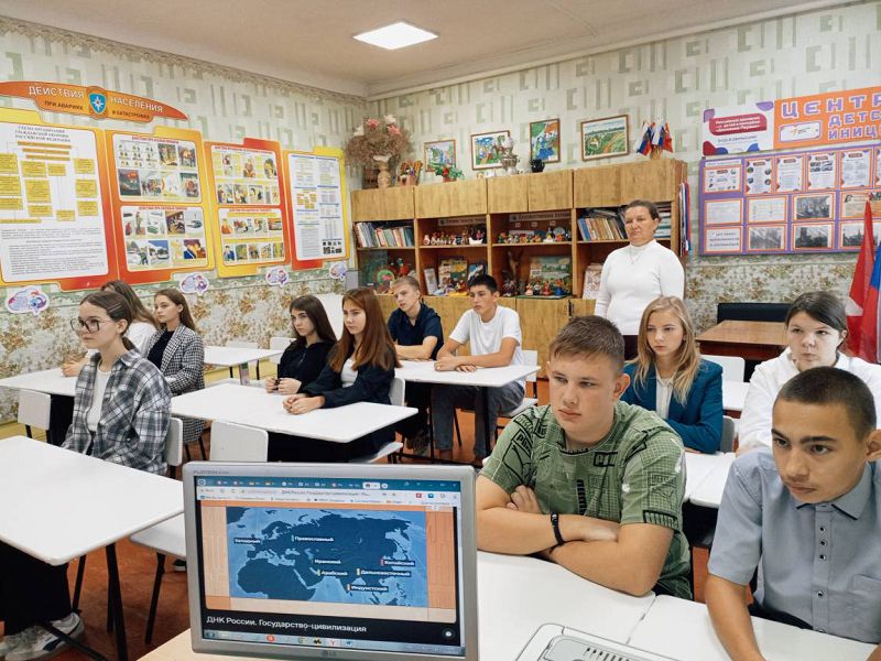 К этой дате в МБОУ Зазерской СОШ с обучающимися 5-9, 11 классов организован просмотр тематического цикла видеороликов "ДНК России" ("Государство-цивилизация; "Карта России. Изменения"; "Созидание: творчество и развитие в русской истории"; "Уникальность России") советником директора по воспитанию и взаимодействию с детскими общественными объединениями Самсоновой Н.А. совместно с классными руководителями.