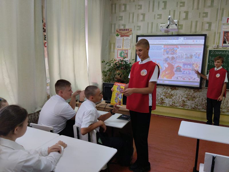 - Актив отряда ДЮП обновили уголок пожарной безопасности с целью размещения информации о проведении мероприятий по «Месячнику пожарной безопасности».