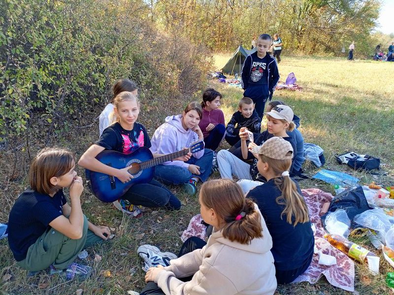 Активисты "Движения первых" обучающиеся 6, 8, 9, 11 классов совместно с председателем ПО Мышанской С.В., советником директора по воспитанию и взаимодействию с детскими общественными объединениями Самсоновой Н.А. и классным руководителем Рягузовой О.Н. встретились с матерью героя Иванченко Е.Г.. Они поблагодарили маму за сына и почтили его память минутой молчания в садике, посаженном им лично. На природе дети, подкрепившись пирожками, бутербродами и напитками, бегали, прыгали, пели песни под гитару, играли в футбол, пионербол, выбивного и приняли участие в акции "Единство в наших руках", посвященной Дню воссоединения ДНР, ЛНР, Херсонской и Запорожской областей с Россией. Педагоги, родители и дети получили заряд бодрости и здоровья на целый учебный год!