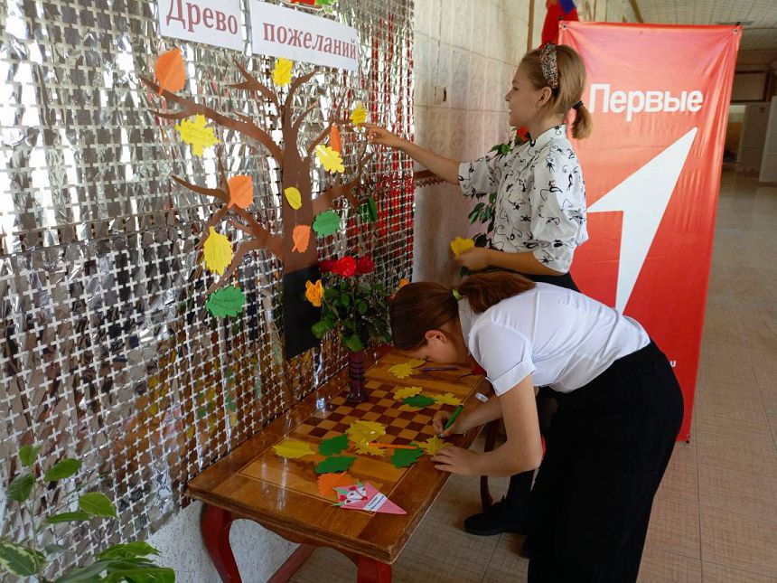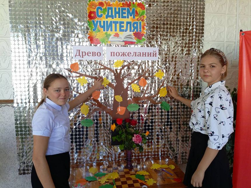 4 октября 2024 года дети написали на листочках свои пожелания учителям и прикрепили к символическому древу. Учителям было приятно прочесть детские пожелания, которые отражали важность их труда. Они тоже присоединились к этой акции и написали свои пожелали всему педагогическому коллективу. Волонтерами школы была проведена акция «Спасибо, школа!», проводимая Минпросвещения России совместно с Институтом развития интернета. Ребята выразили признательность учителям за годы обучения, заботу, за настоящую дружбу и бесконечную веру в своих учеников. Спасибо вам, дорогие наши педагоги-наставники, крепкого вам здоровья и мирного неба над головой!