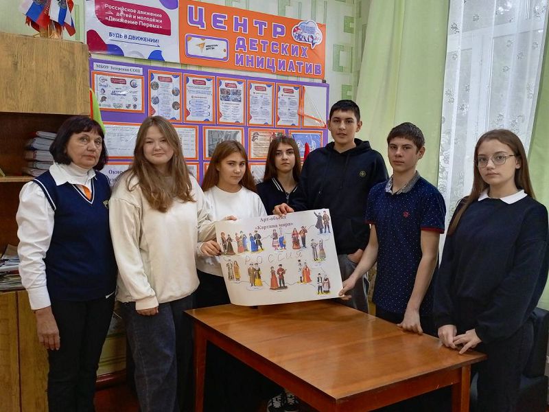 Россия исторически сложилась как многонациональное государство, многоязычное и поликонфессиональное, поэтому вопросы, связанные с национальными отношениями, являются центральными для нашей страны и области. Советник директора по воспитанию и взаимодействию с детскими общественными объединениями Самсонова Н.А. организовала проведение проекта "Книга дружбы" совместно с классными руководителями 1-8 классов. В рамках проекта обучающиеся создали книгу своего класса, куда написали о своих друзьях разных национальностей и нарисовали символы их культуры. С активом школы 9 и 11 классов создали арт-объект «Картина мира», где каждый обучающийся добавил свою часть, отражающую концепцию мира и согласия.