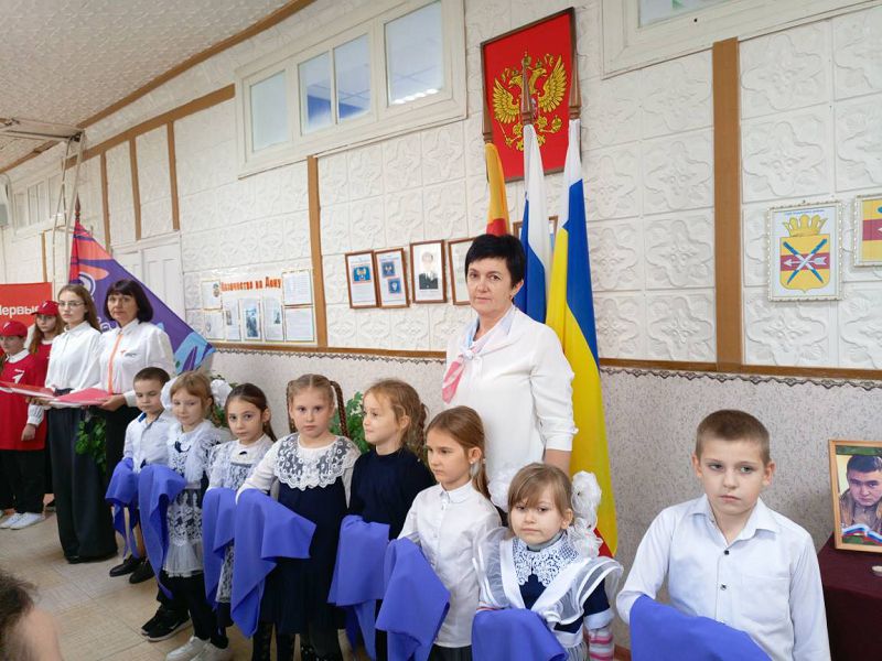 С напутственными словами к ребятам обратилась советник директора по воспитанию и взаимодействию с детскими общественными объединениями Самсонова Н.А., которая провела церемонию посвящения с активным участником "Движения первых" Лебедевой Елизаветой ученицей 9 класса.