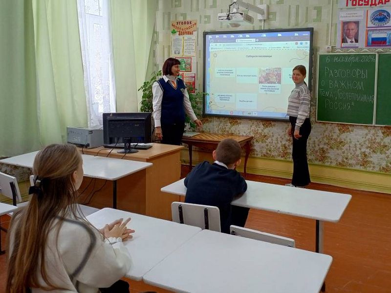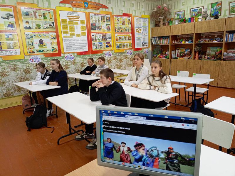 В рамках цикла внеурочной деятельности "Разговоры о важном" 6 ноября 2024 года в МБОУ Зазерской СОШ состоялись занятия "Гостеприимная Россия. Ко Дню народного единства". Тема урока «Гостеприимная Россия» направлена на расширение знаний учащихся о традициях гостеприимства в разных регионах страны и формирование уважения к культуре других народов.