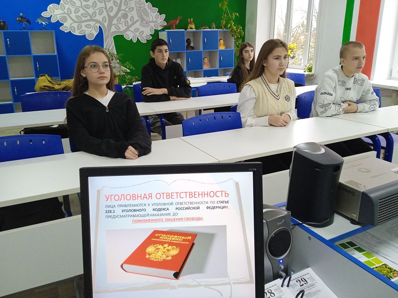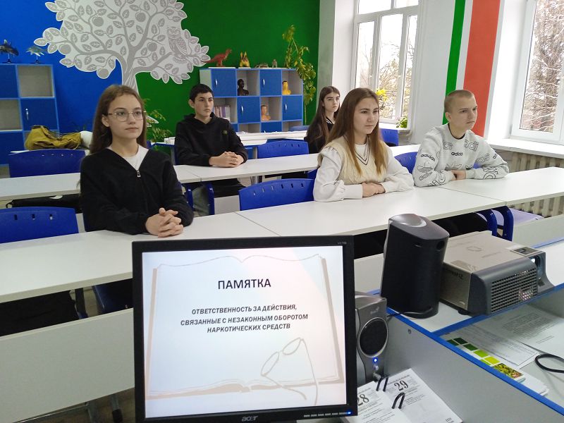 Перед обучающимися 6-11 классов выступил участковый, который рассказал об ответственности за распространение наркомании среди несовершеннолетних, и об ответственности за вовлечение несовершеннолетних в преступную деятельность, связанную с незаконным оборотом наркотических средств, а так же ответила на многочисленные вопросы подростков школы.