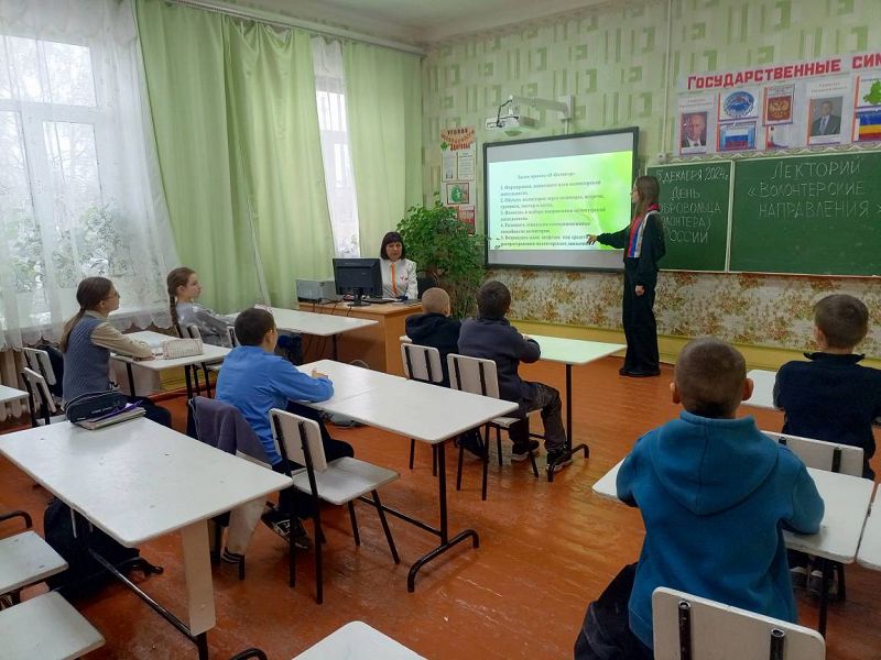 - лекторий "Волонтерские направления" проведен совместно с руководителем волонтёрского отряда Мышанской С.В., его лидером Казьменко М.Н. и членами Лебедевой Е. и Иванчиной В., которые рассказали о деятельности волонтеров нашей школы. В ходе лектория ребята не только познакомились с направлениями работы волонтеров, но и узнали о том, как стать добровольцем, какие человеческие качества нужно для этого сформировать в себе.