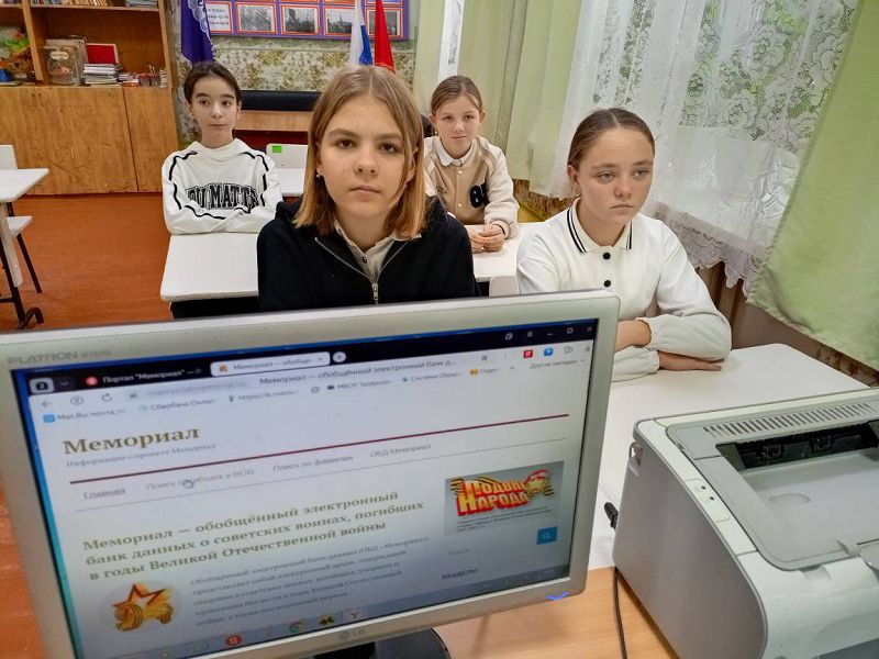 Дети прикоснулись к истории великого сражения под Москвой, посмотрев презентацию и видеофильм, почтили память минутой молчания Героев битвы. Они посетили школьный музей и организовали поиск родственников, погибших бойцов, сражавшихся в годы Великой Отечественной войны на сайтах "Мемориал" и "Подвиг народа".