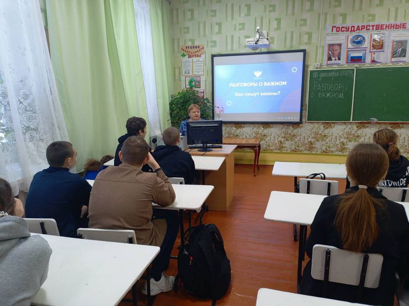 После линейки в школе проведены внеурочные занятия «Разговоры о важном» на тему "Как пишут законы?" с обучающимися 1-9, 11 классов классными руководителями совместно с советником директора по воспитанию и взаимодействию с детскими общественными объединениями Самсоновой Н.А.. Занятия посвящены процедуре принятия законов в России с целью формирования у учащихся представления о правотворческих процессах в России, а также о роли законов в регулировании общественных отношений, обеспечении порядка и сохранении справедливости.