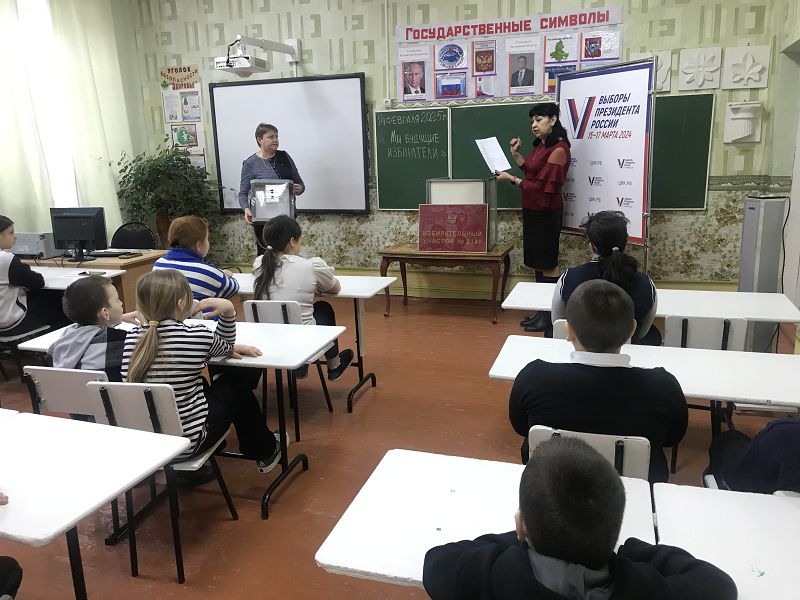 Председатель УИК 2340 Ромашкова О.А. встретилась с ребятами из 3 и 4 классов. Она рассказала о том, как проводятся выборы, кто может в нашей стране избирать и быть избранным. Ольга Александровна показала оборудование, которое используются для проведения выборов. Это урна, кабинка, демонстрационные стенды, переносные ящики. Дети познакомились с понятиями: тайное голосование, избирательный участок, бюллетень.