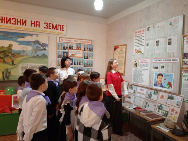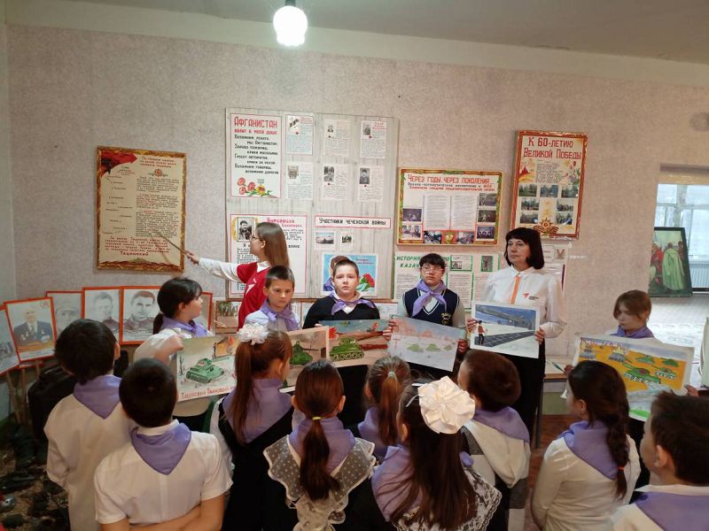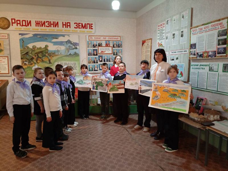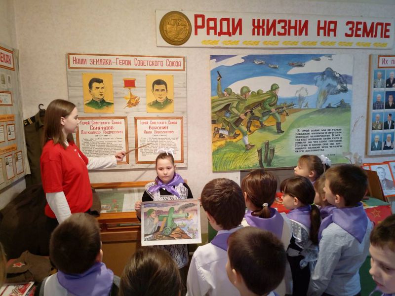 14 февраля 2025 г. в МБОУ Зазерской СОШ проведена экскурсия в школьном музее по разделу "Ради жизни на земле" с "Орлятами России" 2 и 3 классов, организованной советником директора по воспитанию с детскими общественными объединениями Самсоновой Н.А. совместно с юными экскурсоводами Лебедевой Е. (9 кл.) и Казьменко А. (11 кл.). Рассказы о Героях и истории Великой Отечественной, Афганской, Чеченской войн сопровождали показом детских рисунков, на которых запечатлены подвиги и героические события тех лет.