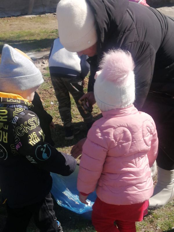 Мы в теплый день вышли на свой участок поработать, навести порядок. Такому нужному и полезному делу были рады все. Ребята взяли мешки для мусора и начали дружно собирать упавшие веточки и другой мусор.