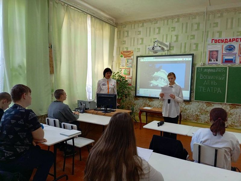 В рамках мероприятий, посвященных Всемирному дню театра, в МБОУ Зазерской СОШ состоялись следующие мероприятия: "Импровизированный калейдоскоп" с обучающимися 6 класса учителем литературы Исаевой И.В. совместно с советником директора по воспитанию Самсоновой Н.А., которые рассказали о театре, его истории и значении в культуре, о роли театра в жизни человека, о его влиянии на эмоции и мысли зрителей; игра "Истории с эмоциями" с обучающимися 3 класса классным руководителем Казьменко М.Н. в ходе, которой участники бросали поочередно куб эмоций и придумывали фрагмент истории, выпавшей эмоции. Цель игры - развить воображение обучающихся, научить их осознавать причины и последствия эмоций, лучше понимать и выражать свои чувства. Ребята хорошо справились с заданиями мероприятий. Организован виртуальный театр "Ближе, чем кажется", в рамках которого обучающиеся 1-8 классов посмотрели полноценные и знаменитые онлайн-спектакли: "Звездопад", "Выше гор", "Сын-медведь", "Евгений Онегин", "Салика" и другие.