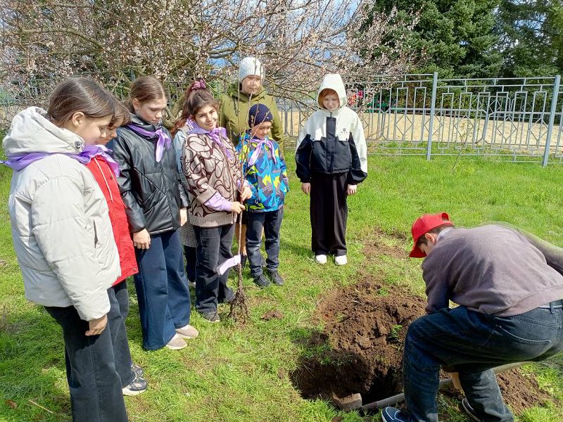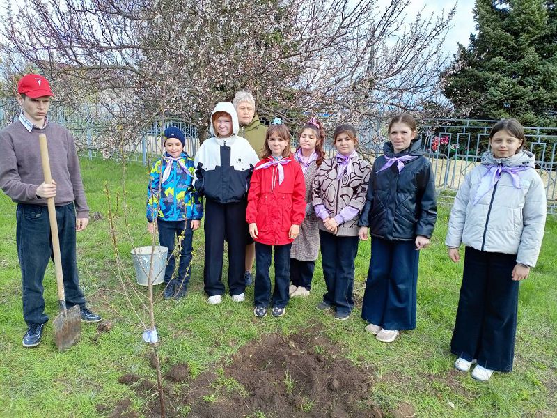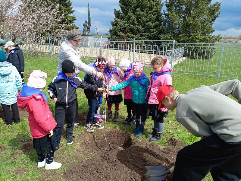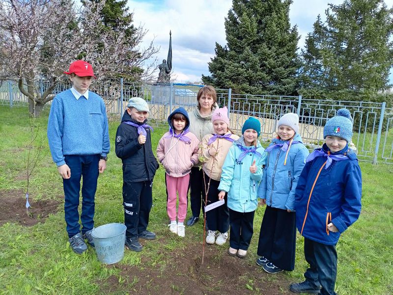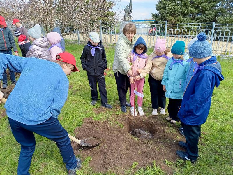 Орлята совместно с классными руководителями и вожатыми-наставниками "Движение первых" 7, 9 классов дали старт посадки сада Победы на территории около школы и Братской могилы воинов, погибших в боях за освобождение хуторов Зазерского сельского поселения в 1943 году. Они посадили саженцы плодовых деревьев: яблоню (1 класс), 3 вишни (2-4 классы).