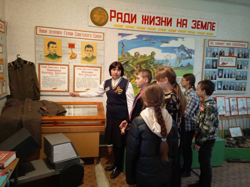 Аллея Героев", посвященное 80-летию Победы, с советником директора по воспитанию и взаимодействию с детскими общественными объединениями Самсоновой Н.А. и классным руководителем Девятых С.Н.. В ходе занятия, которое состоялось в школьном музее", ребята познакомились с Героями- участниками Великой Отечественной войны 1941-1945 г.г., которых в настоящее время уже нет в живых, Героями-земляками Советского Союза Свиридовым А.А. и Ворониным И.Н., узниками концентрационных лагерей, учителями-участниками Великой Отечественной войны и Героями-земляками, не вернувшимися домой с войны.