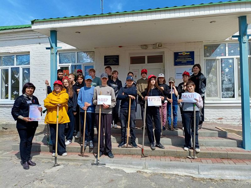 Ребята организовали уборку территории мемориала "Никто не забыт, ничто не забыто", посвященном павшим землякам в 1941-1945 г.г. и Братской могилы- захоронения воинов, погибших за освобождение хуторов Зазерского сельского поселения в 1943 году, провели с учителям физкультуры общешкольную зарядку и футбол, организовали Первомайский субботник по наведению порядка на территории школьного двора. В преддверии первомайского праздника советником директора по воспитанию и взаимодействию с детскими общественными объединениями Самсоновой Н.А. организована творческая мастерская "Атрибуты праздника" с обучающимися 1-2 и 5 классов совместно с классными руководителями Реентовой Л.М. и Бурховцовой Н.И.. В рамках мероприятия с детьми был проведен мастер-класс по изготовлению первомайской атрибутики: цветов, флажков и плакатов, с которыми они будут встречать праздник 1 Мая. В преддверии праздника Весны и Труда советником директора по воспитанию Самсоновой Н.А. проведена деловая игра под названием "Билет в будущее" с обучающимися 8-9, 11 классов. Каждой команде был вручен символический, но важный атрибут – трудовая книжка. Этот документ, который им предстояло заполнять на протяжении всей игры, стал своеобразным пропуском в мир взрослой трудовой деятельности.