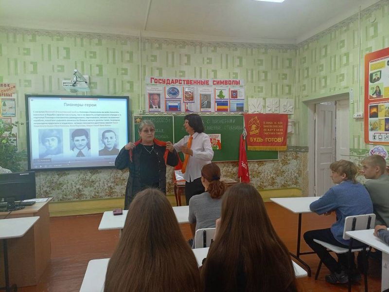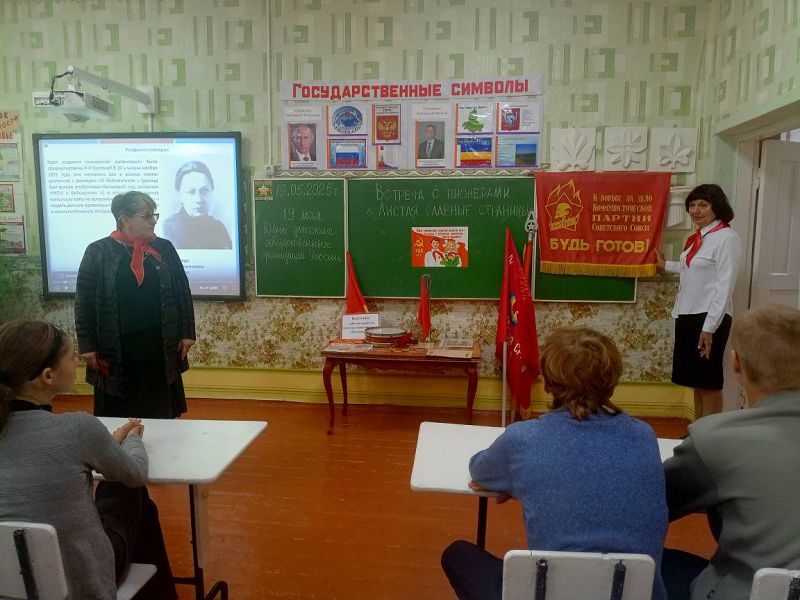 В рамках Дня общественных организаций России, 19 мая 2025 года, в МБОУ Зазерской СОШ состоялась встреча с пионерами "Листая славные страницы". Обучающиеся 7- 9, 11 классов встретились с директором школы Медведевой Л.В., которая возглавляла пионерскую и комсомольскую дружину школы имени Героя Советского союза Воронина И.Н. с 1976 по 1982 годы, и советником директора по воспитанию и взаимодействию с детскими общественными объединениями Самсоновой Н.А., имеющая в пионерские годы общественное поручение - командир отряда имени пионера-героя Вали Котика. Вначале мероприятия участники встречи посмотрели видеоролик "Развитие детского движения в России". Ребята узнали о символике и законах пионеров, о песне-гимне пионерской организации "Взвейтесь кострами синие ночи...". Затем руководители школы поделились своим опытом участия в деятельности детской организации, воспоминаниями о школьных годах, об ответственности за общественные поручения. Они рассказали, как вступали в пионерскую и комсомольскую организации, какие эмоции испытывали в тот момент, как проходили пионерские сборы и комсомольские собрания, какие вопросы решались. Это мероприятие стало ярким напоминанием о важности исторического наследия и ценностей, которые передаются из поколения в поколение.