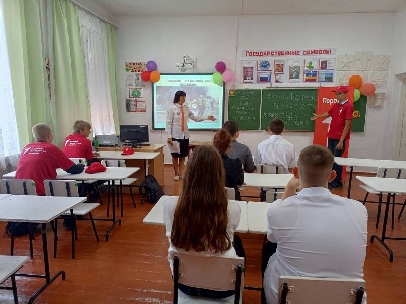 После по классам проведено участие обучающихся во Всероссийской акции "Патруль безопасности", посвящённой Дню солидарности в борьбе с терроризмом с целью формирования культуры безопасности и осознанного отношения к вопросам профилактики противодействию и распространению идеологий терроризма и экстремизма среди детей и молодежи. С обучающимися 8-9 классов проведен дискуссионный клуб "Мы за безопасность" в ходе которого советником директора по воспитанию и участниками "Движения первых" организован просмотр презентации о терроризме и обсуждены вопросы: Что такое терроризм и экстремизм? ", "Почему это опасно для общества?", "Что может сделать каждый для безопасности в своем сообществе?" и др.. Они призвали всех быть бдительными, чтобы противостоять этому злу.