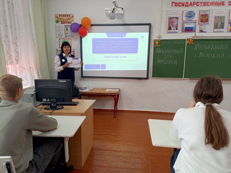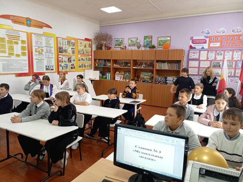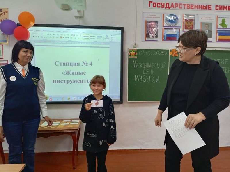1 октября 2025 года в МБОУ Зазерской СОШ отмечен Международный день музыки. В этот праздничный день организованы и проведены советником директора по воспитанию и взаимодействию с детскими общественными объединениями Самсоновой Н.А. следующие мероприятия: "В поисках потерянных нот" совместно с классными руководителями Казьменко М.Н., Мышанской С.В. и учениками-наставниками, в рамках которого обучающиеся 3-4 классов проходили задания по станциям и получали баллы-ноты на маршрутных листах.