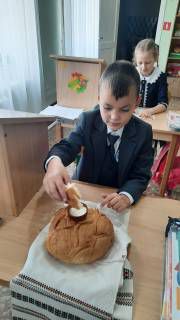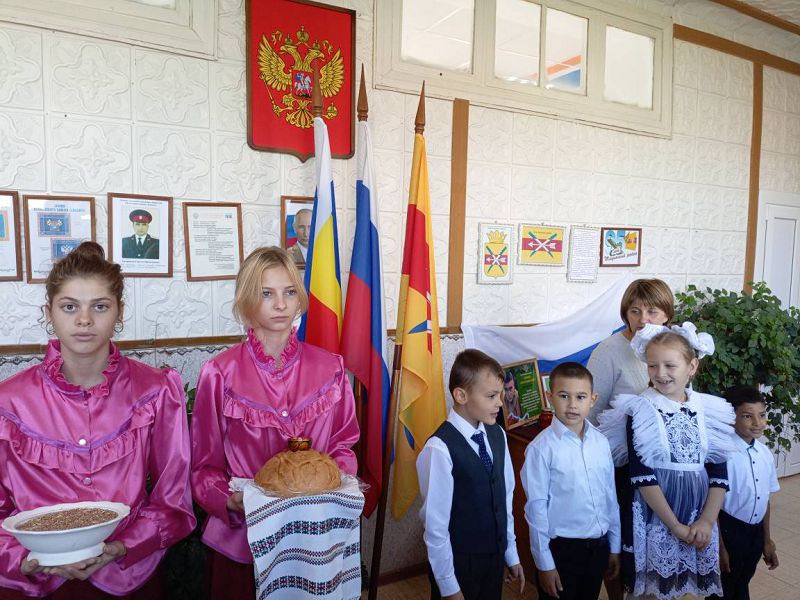 Торжественная линейка для обучающихся 1-10 классов была начата с выноса Государственного флага России юнармейской знаменной группой и исполнением Гимнов Российской Федерации и Всевеликого войска Донского. Помощником атамана Пушкаревым Михаилом был сдан рапорт Дудинову И.И. казаку Войскового казачьего общества "Всевеликое войско Донское" Первого Донского округа Тацинского юрта о готовности первоклассников к ритуалу посвящения. Первоклассникам были оглашены заповеди казаков и вручены казачьи эмблемы. После произношения клятвы казаков, юных казачат посыпали пшеницей и вручили классному руководителю Бурховцовой Н.И. хлеб с солью по доброму казачьему обычаю, который поможет хранить традиции казаков, стать настоящими казачатами, с добрым сердцем, любящими родную Донскую землю, прославляющую ее своими делами. Ряды юных казаков нашей школы пополнились. Казачеству быть на Донской земле!