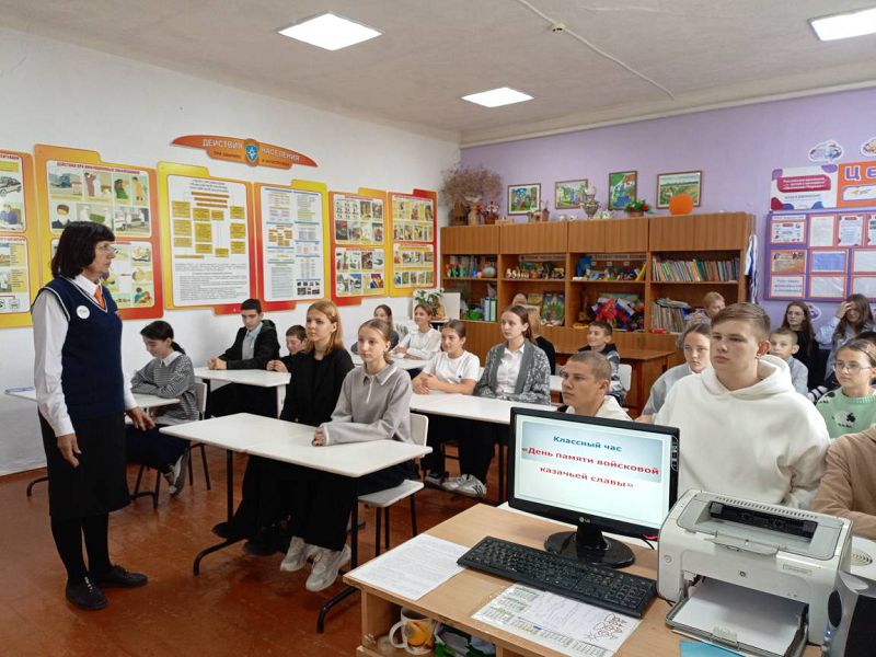 Классный час "День памяти войсковой казачьей славы", посвященный подвигам казаков и их выдающихся командиров - Матвея Ивановича Платова, Афанасия Федоровича Бурсака, Дениса Васильевича Давыдова и других героев, проведен с обучающимися 6-10 классов. Героизм и мужество, проявленное донскими казаками в великих битвах под Бородино, Лейпциге, взятие Парижа, стали неотъемлемой частью исторической памяти русского народа.