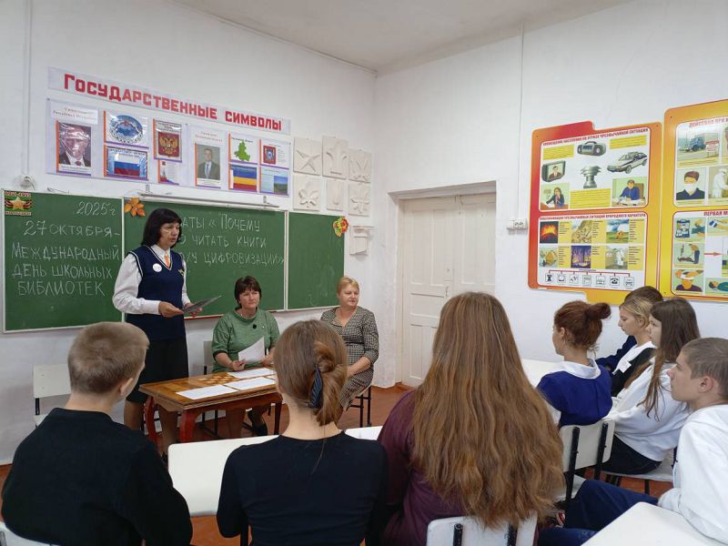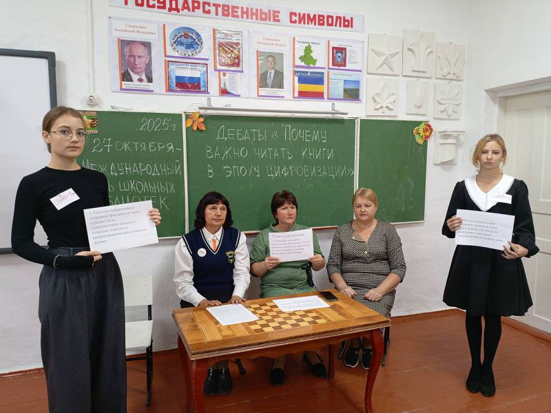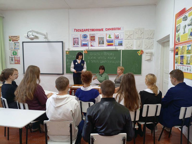 В рамках мероприятий, посвященных Международному дню школьных библиотек, в МБОУ Зазерской СОШ со старшеклассниками 9-10 классов проведены дебаты "Почему важно читать книги в эпоху цифровизации?" советником директорами по воспитанию и взаимодействию с детскими общественными объединениями Самсоновой Н.А. совместно со школьным библиотекарем Мышанской С.В.