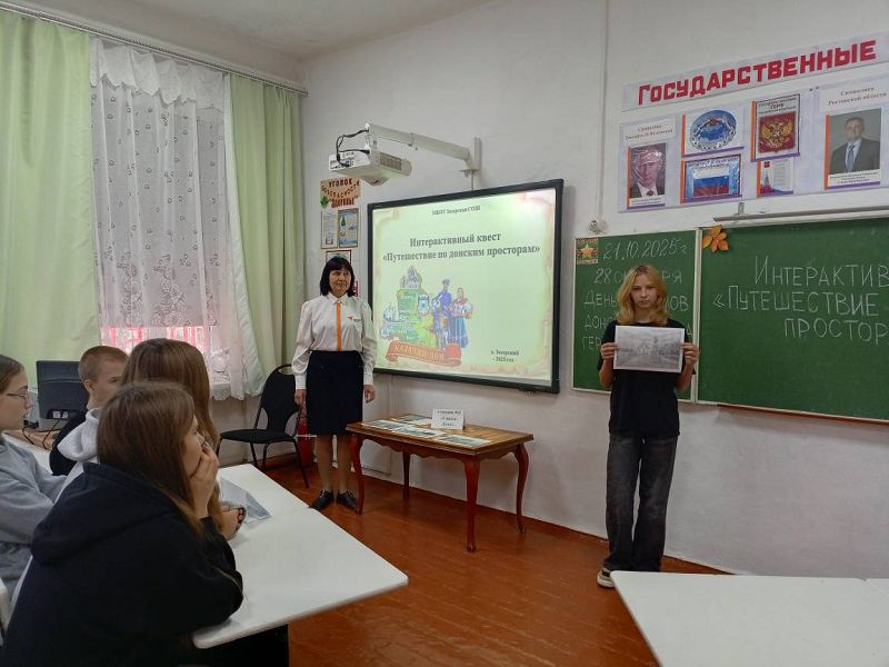 С классными руководителями 9 и 10 классов, учителем истории Высочевой Л. Е. и Борисовой Н.И. организован интерактивный квест "Путешествие по донским просторам". Ребята познакомились с историей, природой и казачьими традициями донского региона. В рамках флешмоба "Гимн в сердцах" самые активные обучающиеся нашей школы исполнили гимн Ростовской области с донскими символами в руках.
