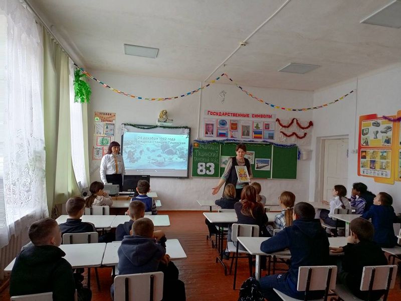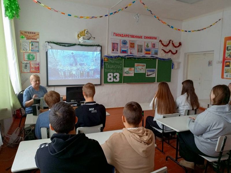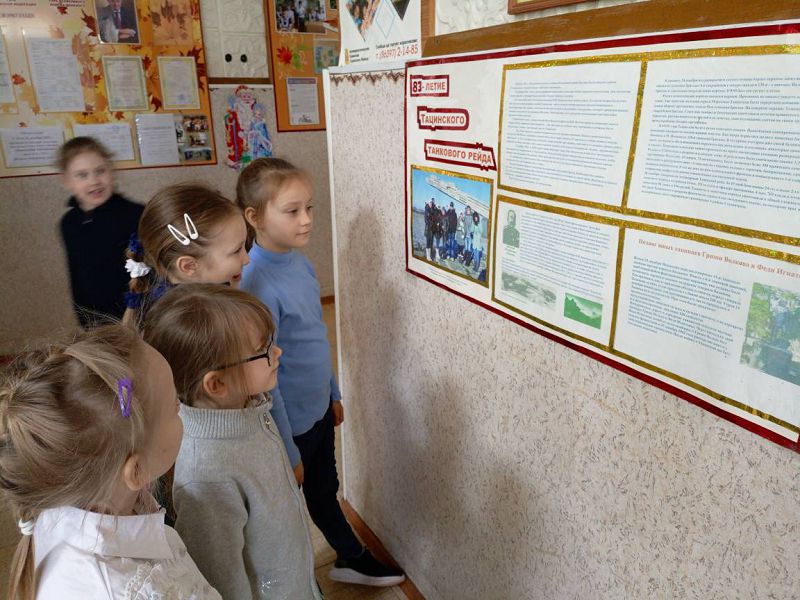 24 декабря 2025 года в Зазерской средней школе с обучающимися 1-10 классов проведены мероприятия, посвященные 83-й годовщине Тацинского танкового рейда, организованные советником директора по воспитанию Надеждой Самсоновой совместно с классными руководителями и экскурсоводами школьного музея, активистами "Движение Первых" Арианой Исаевой и Софией Карадян: классные часы с просмотром видеоролика "Тацинский танковый рейд", экскурсия "По грозным ударам, по белой стреле враги узнавали тацинцев" в школьном музее, беседа с детьми о легендарном рейде у стенда, оформленном в фойе школы. Ребята почтили память минутой молчания погибших героев-танкистов и пионеров-героев Гриши Волкова и Феди Игнатенко.