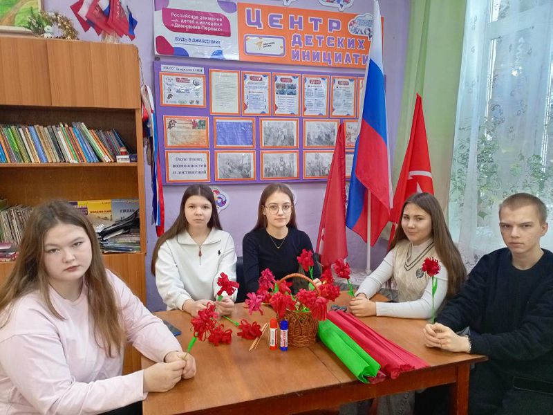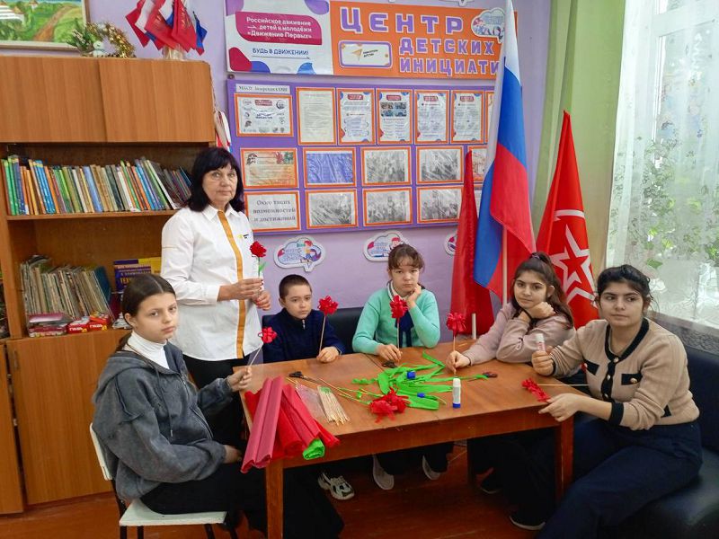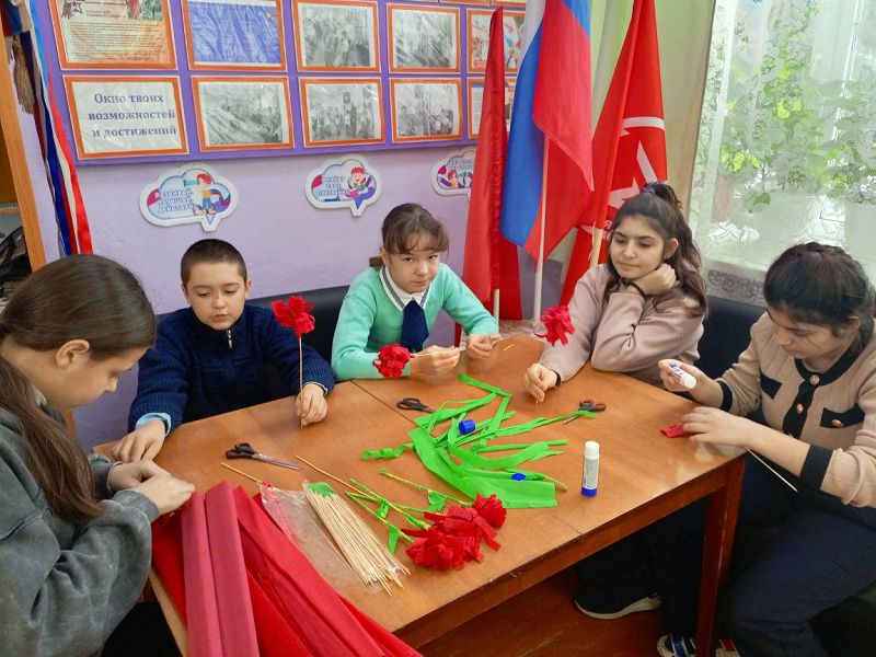 В творческой мастерской "Гвоздика к памятникам Героев ВОВ" изготовлены цветы своими руками обучающимися 4-10 классов.