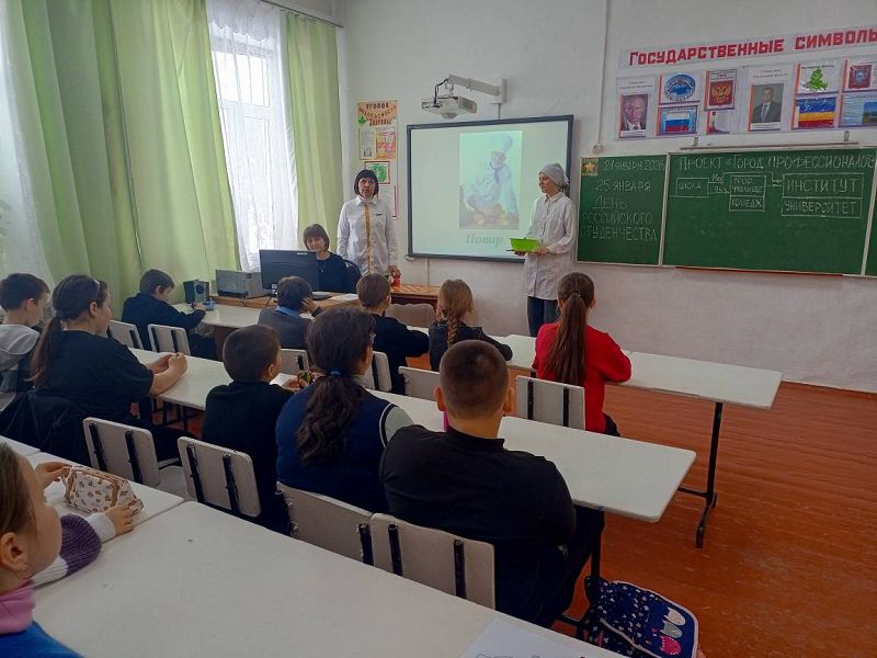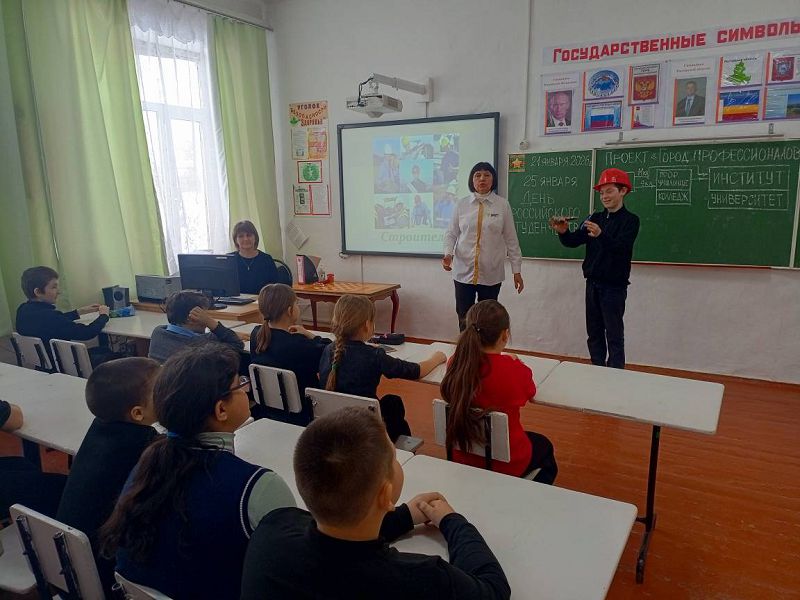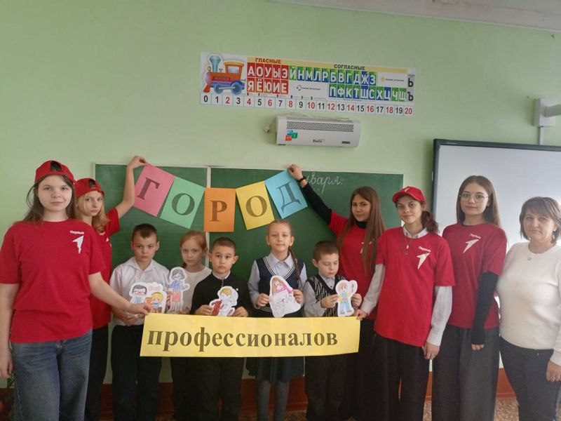 В преддверии Дня российского студенчества с обучающимися 1-4 классов проведен проект "Город профессионалов", организованный советником директора по воспитанию Надеждой Самсоновой совместно с вожатыми-наставниками "Движение Первых" и классными руководителями. В рамках проекта наставники познакомили ребят с профессиями повара, врача, строителя, военного и другими профессиями с просмотром презентации. Затем был задан вопрос детям о том, кем они хотят стать в будущем после школы, на кого пойдут учиться по профессии. Свой ответ дети представили на рисунке. Итогом мероприятия стала выставка рисунков и произнесенный детьми лозунг: "Все профессии важны, всепрофессии нужны!"