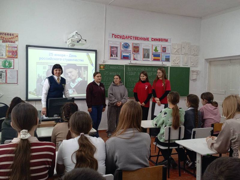 Ко Дню российского студенчества, 22 января 2026 года, в рамках Всероссийской акции "Шаг в студенчество" в Зазерской школе организована Классная встреча со студентами - выпускниками нашей школы советником директора по воспитанию Надеждой Самсоновой совместно с активистами "Движение первых" Варварой Иванчиной и Елизаветой Лебедевой ученицами 10 класса.