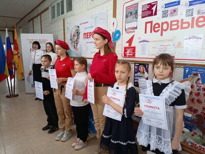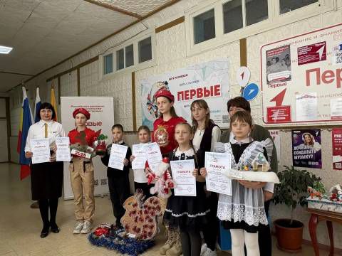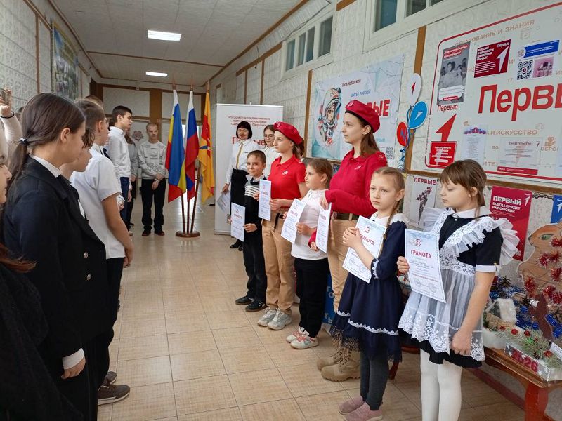 Советник директора по воспитанию и взаимодействию с детскими общественными объединениями Надежда Самсонова и председатель ПО "Движение Первых" Светлана Мышанская познакомили отряды 1-10 классов с героической историей нашей Родины, почтили минутой молчания всех Героев, которые ценой своей жизни защищали свою страну и приближали Победу. Советник директора по воспитанию рассказала о патриотических мероприятиях, которые пройдут в ходе месячника: уроки Мужества, экскурсии в музеи, спортивные соревнования, конкурсы и акции. Затем проведён был фестиваль творчества активистами "Движение Первых" с вручением грамот победителям районного конкурса "Новогодняя мастерская": за 1 место Исаевой Есении (1 кл.), Мороженко Ульяне (2 кл.), за 2 место Гелемеевой Арине (1 кл.), Текучевой Людмиле (3 кл.), Ткачук Григорию (4 кл.), Исаевой Ариане и Бурховцовой Валерии (7 кл.), за 3 место Белыч Марии (2 кл.).