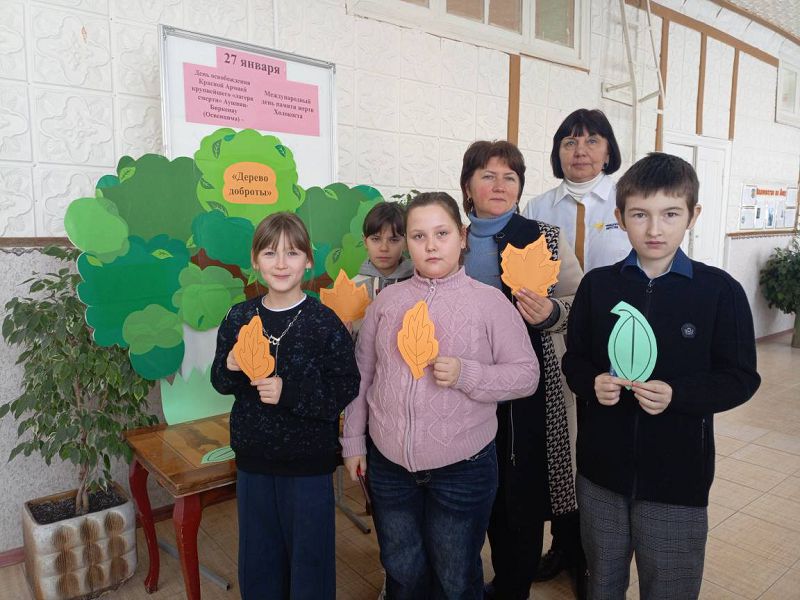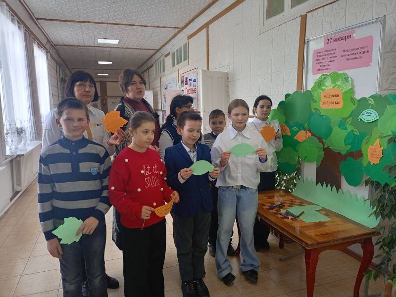 27 января 2026 года в Зазерской школе организованы и проведены мероприятия, посвященные Международному дню памяти жертв Холокоста. 27 января 1945 года Красная Армия освободила крупнейший "лагерь смерти" Аушвиц-Биркенау (Освенцим), в котором погибли до 4 миллионов человек. В фойе школы с обучающимися 3-4 классов организована акция "Дерево доброты" советником директора по воспитанию Надеждой Самсоновой совместно с классными руководителями Светланой Мышанской и Мариной Казьменко.
