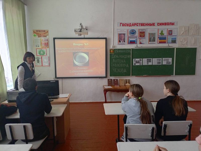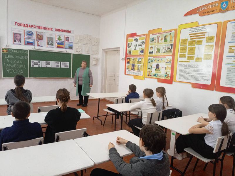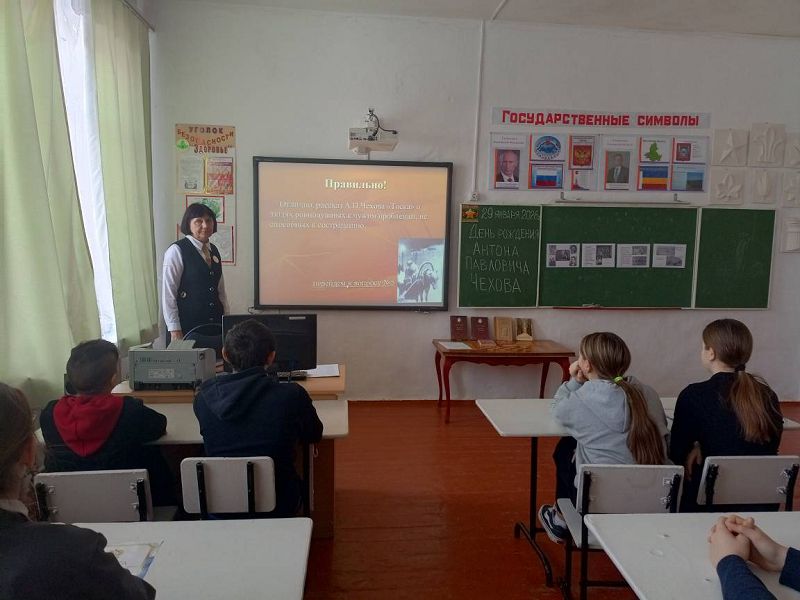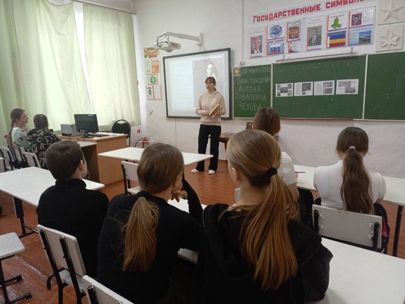 29 января 2026 года к 166-летию со дня рождения великого писателя, драматурга и нашего выдающегося земляка — Антона Павловича Чехова в Зазерской школе организованы и проведены мероприятия с обучающимися 1-10 классов советником директора по воспитанию Надеждой Самсоновой совместно с учителями литературы Морозовой Н.А., Исаевой И.В. и классными руководителями.