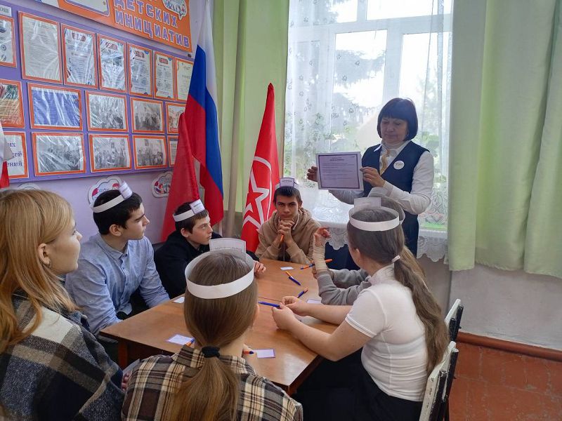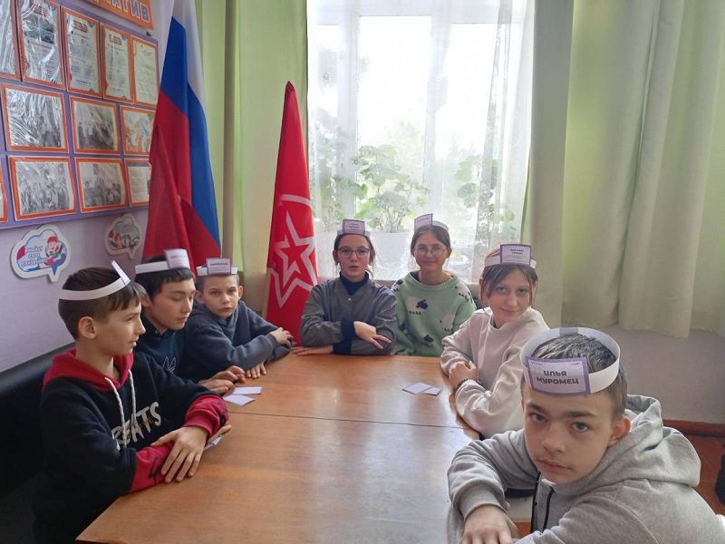 В ходе настольной игры "Угадай героя" по принципу игры "Кто я?" обучающиеся 3-4 классов, 5-9 и 10 классов, задавая наводящие вопросы друг другу отгадывали имя героя книги, указанного на "ободке", надетого на голову с закрытыми глазами.