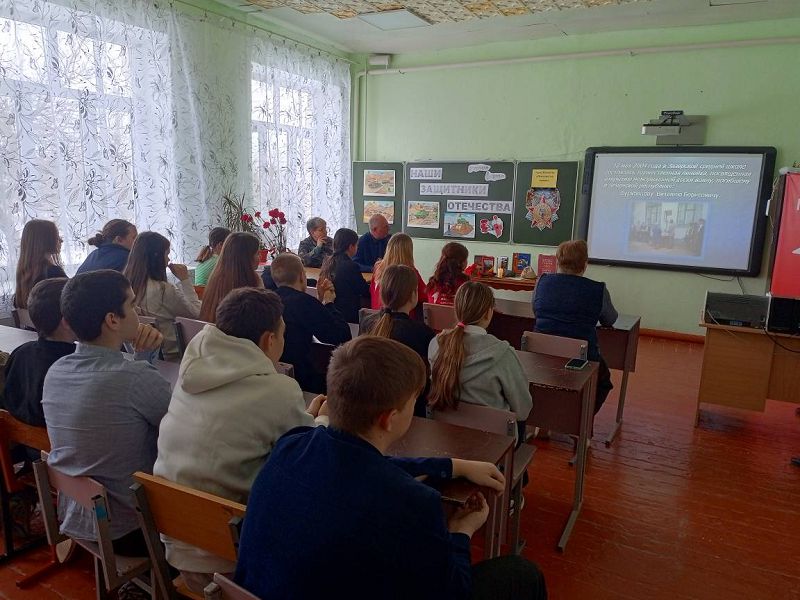 В преддверии Дня памяти о россиянах, исполнявших служебный долг за пределами Отечества, который отмечается в России 15 февраля, в Зазерской школе с обучающимися 1-10 классов организованы мероприятия советником директора по воспитанию Надеждой Самсоновой совместно с председателем ПО "Движение первых" Светланой Мышанской и классными руководителями.