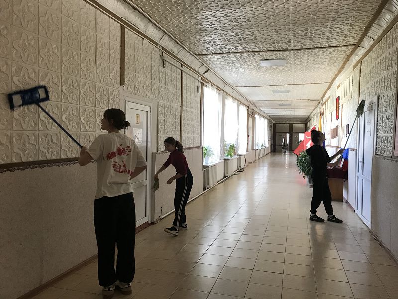 Сегодня, 25 марта, ученики нашей школы продолжают трудиться и благоустраивать территорию школы и прилегающий к ней участок. Мальчики очищают после зимы двор от поросли, мусора и сухой растительности. Девочки моют окна, двери, протирают пыль.