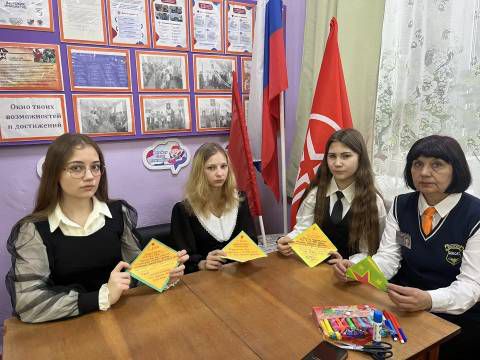 В преддверии Дня защитника Отечества волонтеры 9-10 класса Зазерской школы приняли участие во всероссийской акции «Внуки по переписке». Эта акция помогает соединить поколения и подарить тепло тем, кто особенно нуждается во внимании. Дарья Гудина, Варвара Иванчина и Елизавета Лебедева совместно с советником директора по воспитанию Надеждой Самсоновой на поздравительных открытках написали тёплые слова благодарности и искренние пожелания ко Дню защитника Отечества.