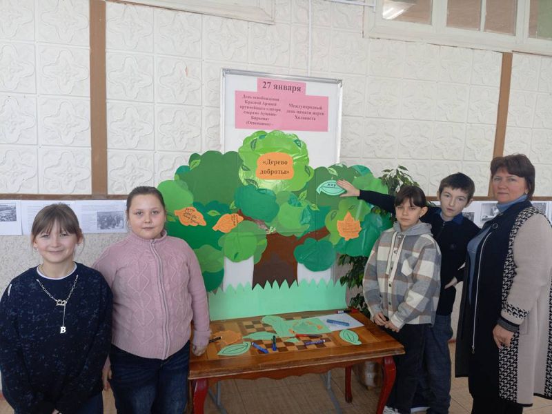 27 января 2026 года в Зазерской школе организованы и проведены мероприятия, посвященные Международному дню памяти жертв Холокоста. 27 января 1945 года Красная Армия освободила крупнейший "лагерь смерти" Аушвиц-Биркенау (Освенцим), в котором погибли до 4 миллионов человек. В фойе школы с обучающимися 3-4 классов организована акция "Дерево доброты" советником директора по воспитанию Надеждой Самсоновой совместно с классными руководителями Светланой Мышанской и Мариной Казьменко.