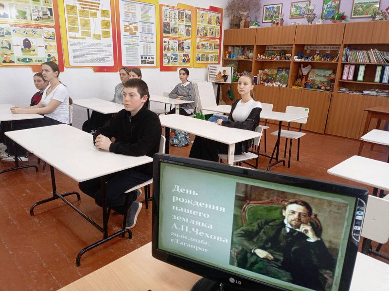 29 января 2026 года к 166-летию со дня рождения великого писателя, драматурга и нашего выдающегося земляка — Антона Павловича Чехова в Зазерской школе организованы и проведены мероприятия с обучающимися 1-10 классов советником директора по воспитанию Надеждой Самсоновой совместно с учителями литературы Морозовой Н.А., Исаевой И.В. и классными руководителями.
