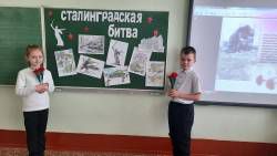 В этот день в Зазерской школе с обучающимися 1-10 классов проведены воспитательные мероприятия, организованные советником директора по воспитанию Надеждой Самсоновой совместно с классными руководителями. Лекция "История Великой победы. Разгром немецко-фашистских войск в Сталинградской битве" проведена с обучающимися 10 класса.