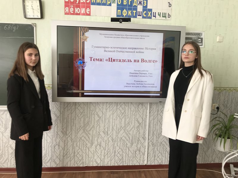 2 марта 2024 года ученицы 8 класса нашей школы Лебедева Елизавета и Иванчина Варвара приняли участие в районном фестивале ученических проектов и исследовательских работ «День науки». Работа была посвящена событиям из истории Великой Отечественной войны и называлась «Цитадель на Волге». Участницы конкурса заняли третье место.